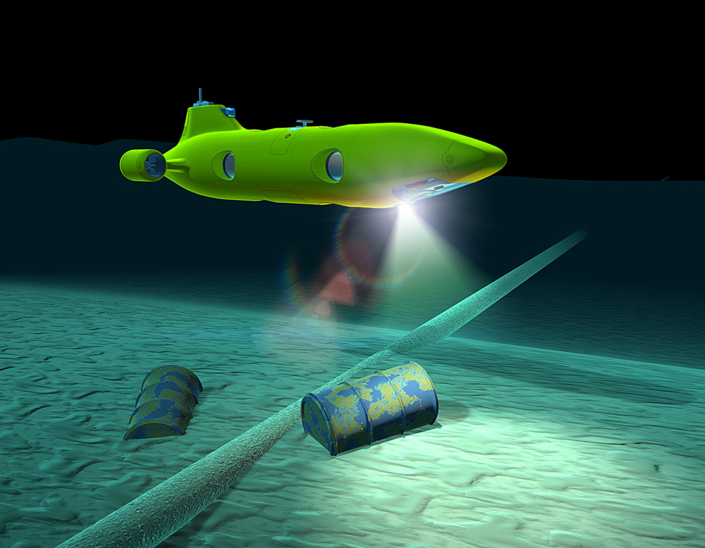 Project for BP to show concepts of an Autonomous Underwater Vehicle. This robotic underwater drone is designed to inspect crude oil piplelines on the ocean floor. An inspection could take several days or weeks as miles of pipelines and equipment are inspected. The AUT would use sonar and other sensors to follow mapped terrain of the seafloor and previously mapped equipment locations. Data collected would be compared to stored 3D maps of the same pipeline and compared in order to detect damaged structures. If damage is detected the AUT uses underwater cameras to visually inspect and record areas of interest. At the end of its inspection mission, the AUT surfaces and is picked up by ship.